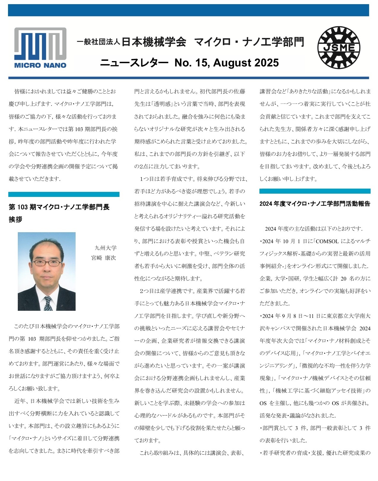 If you are a member of the Japan Society of Mechanical Engineers and need information related to micro/nano engineering, please register with the Micro/Nano Engineering Division.